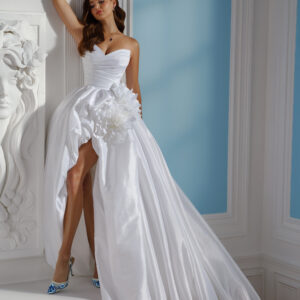 View cart “Martin Thornburg MT6027A Farren – Strapless Sweetheart Ball Gown Wedding Dress with 3D Floral Accents & High Slit” has been added to your cart.