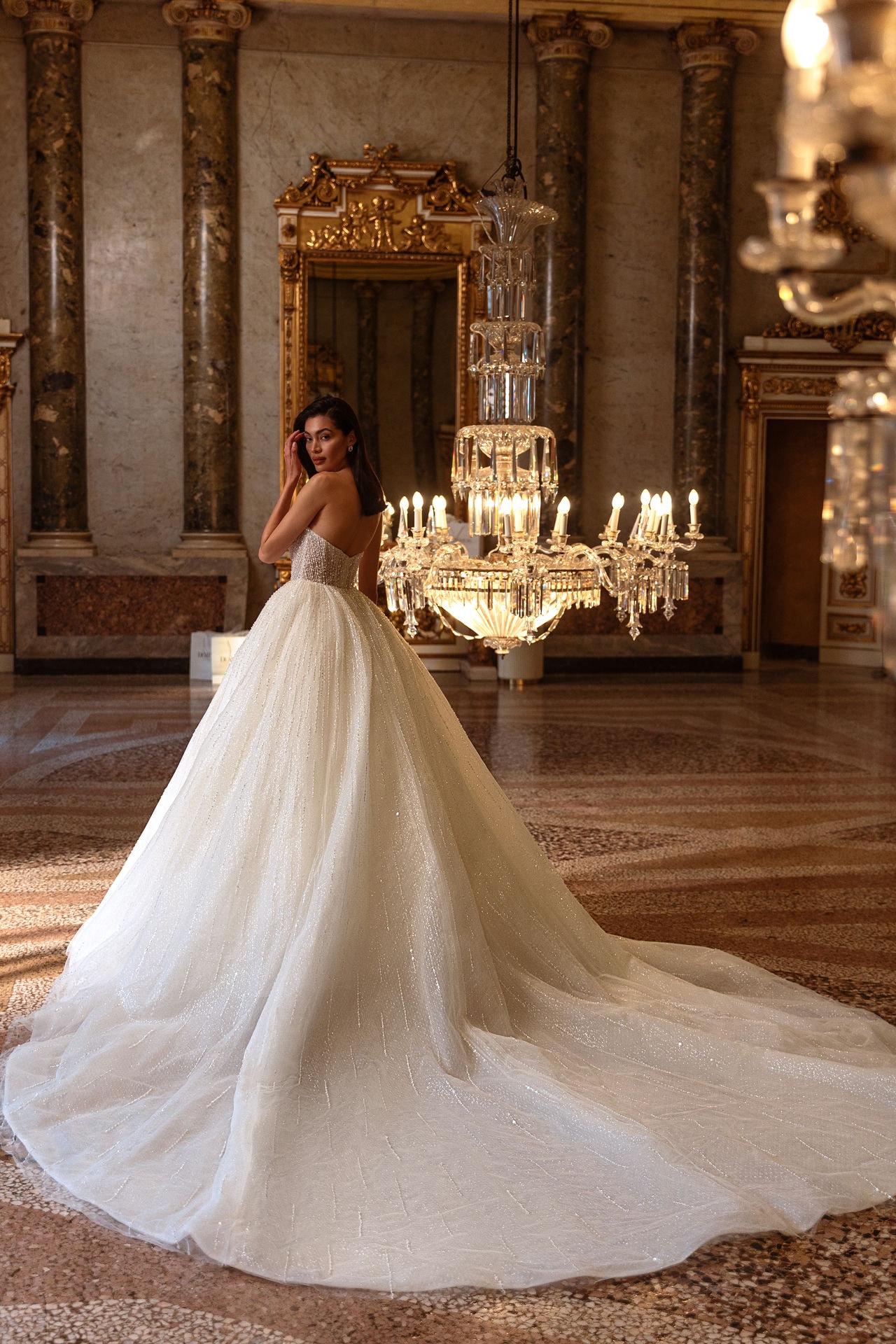 The Lumina wedding dress by Demetrios is like a fairytale princess meets elegant glamour.